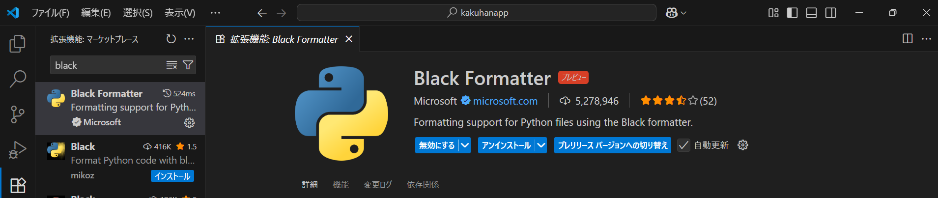 ちなみにBlackは「妥協のないコードフォーマッター」です。他のフォーマッターより厳しいルールで整形し、設定で変更できるオプションもほとんど無いです。フォーマットに関する議論を排除し開発効率を上げることを目指しています。